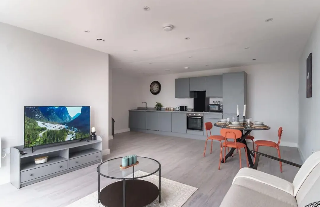 Fantastic 3 Bedroom Manchester Apartment ligger i Salford distriktet i Manchester og 20 km fra Manchester flyplassen. Denne innkvarteringen består av 2 soverom og 2 baderom.